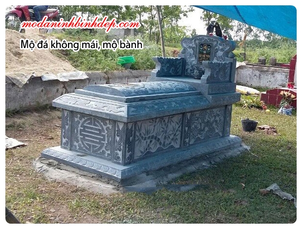 Mộ đá không mái hay còn gọi mộ đá tam sơn, mộ đá hậu bành. Đây là mẫu mộ đá đơn giản, dễ vận chuyển, dễ lắp đặt, giá thành rẻ.